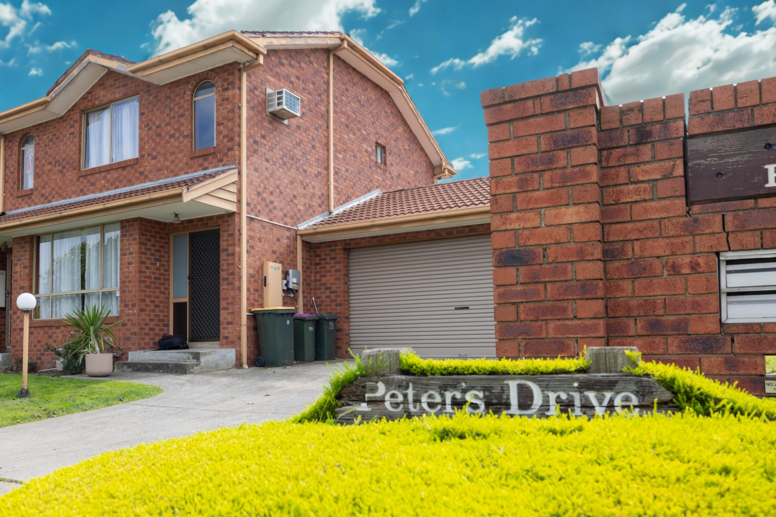 Solar panels add energy efficiency, and the rare double brick garage for two cars is a standout feature in this category.